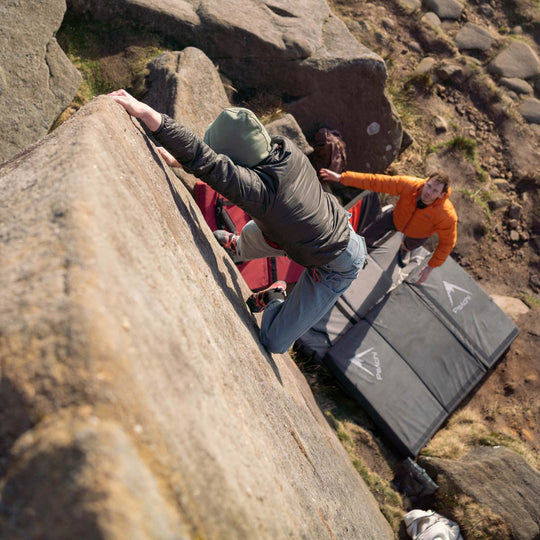 Psychi is an independent climbing company run by Rik and Ben, and a few very helpful friends (you know who you are)!. We’re based in Marple just on the edge of the Peak District.. yep, we do love gritstone! We're keen climbers and outdoor enthusiasts and we're here to make climbing as inclusive and sustainable as possible. We also like running, dogs, cake and bothies just fyi.